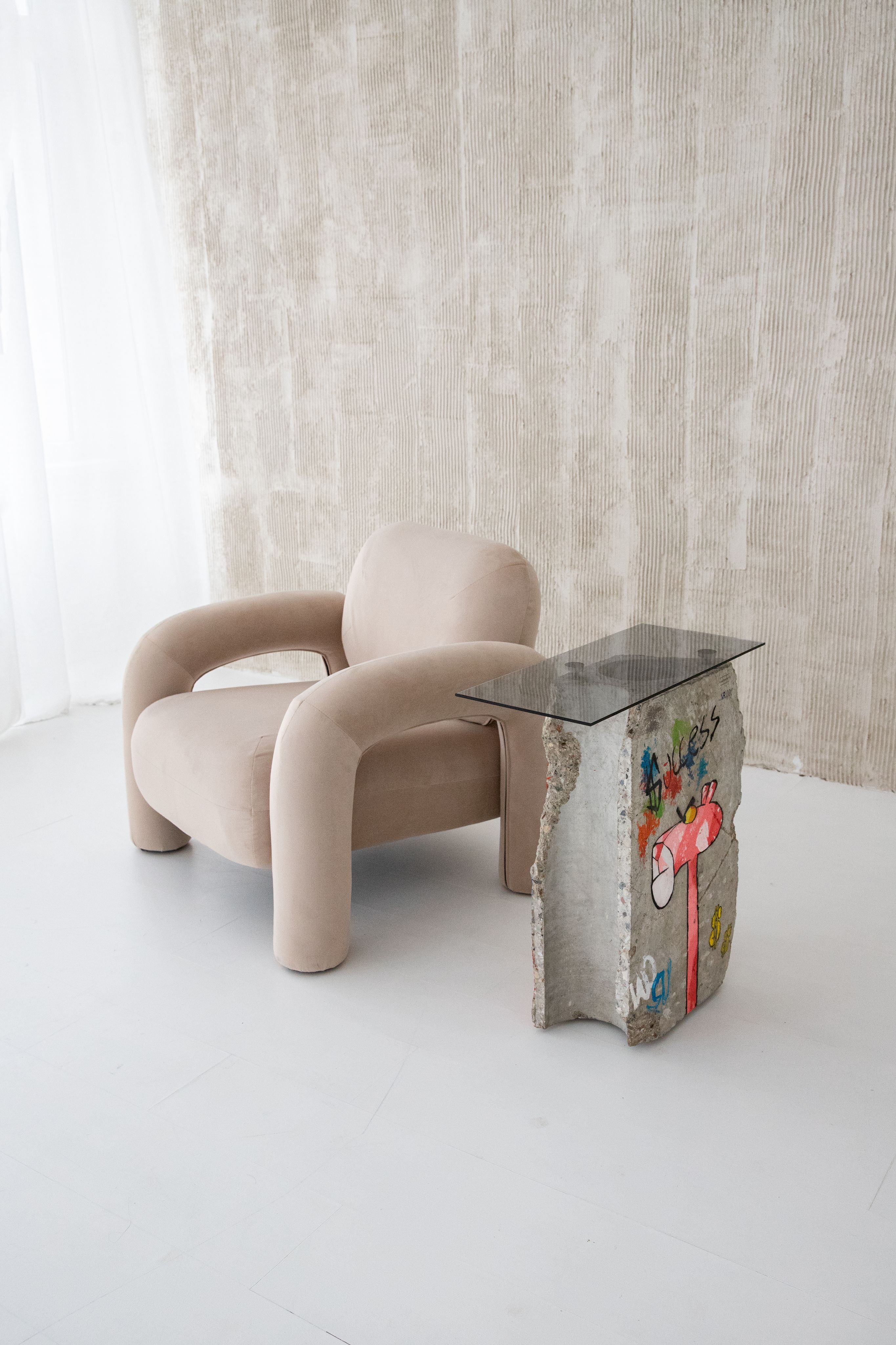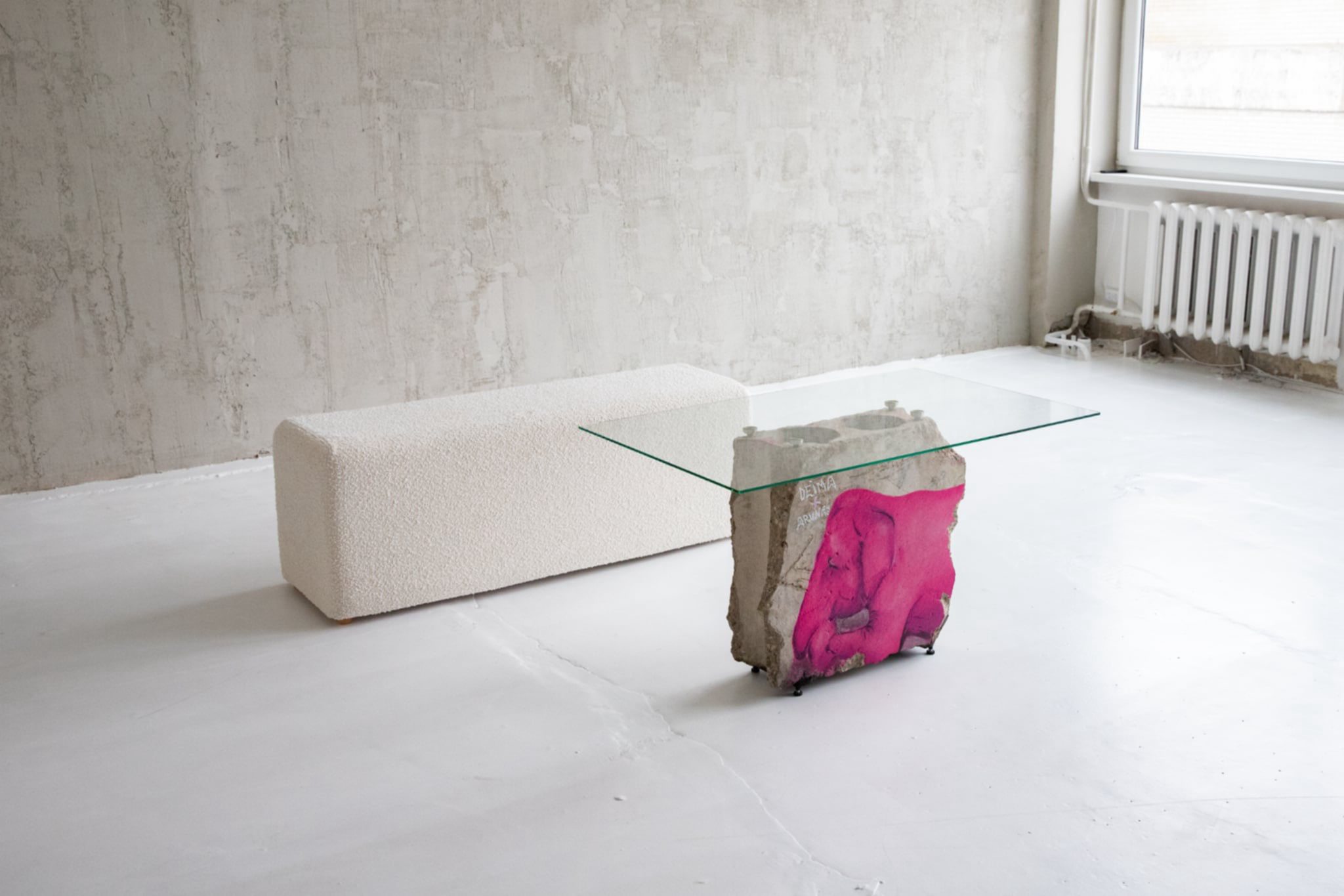 Šių medžiagų formos buvo beveik nekeistos – jos paliktos tokios, kokios buvo rastos. Taip pabrėžiama, kad vertė slypi ne naujoje gamyboje, o kūrybiškame jau esančių dalykų sujungime. Ant betono gaminių atvaizduojama Kauno miesto grafičių istorija, taip sujungianti gatvės meną ir šiuolaikinį dizainą. Tai ne tik daiktai, bet ir nauja prasmė: antrinis, nematomas gyvenimas, tampantis matomu.